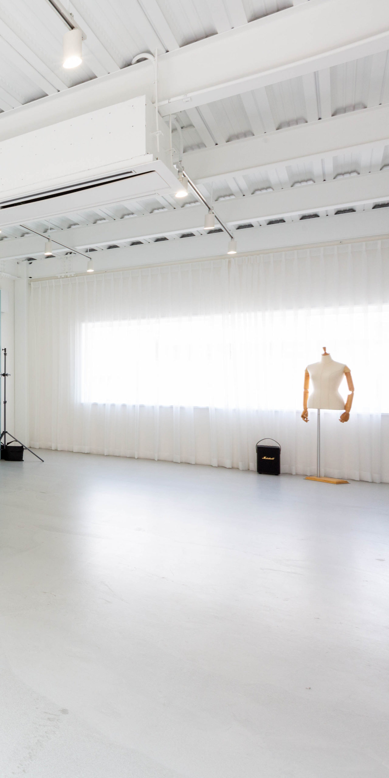 白を基調とした一日中やさしい光りに包まれる明るいスタジオ。あらゆる撮影シーンにご利用ください。